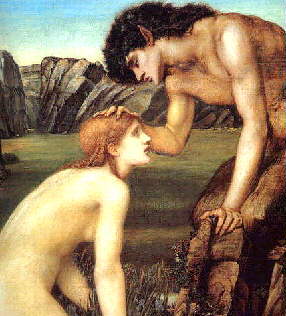 PARTICOLARE Burne-Jones, Sir Edward Coley (inglese, 1833-1898) - Pan e Psiche