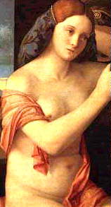 PARTICOLARE Bellini, Giovanni (1429 - 1516) Giovane con collana davanti allo specchio -