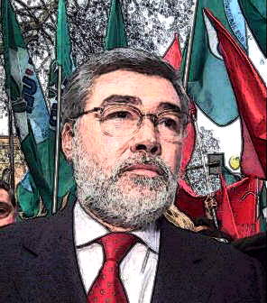 LE BANDIERE SONO DELL'ITALIA - ma quella che lui prevede non e' certo FORZA ITALIA - contro la quale da tempo si batte e ne dimostra tutto l'acredine sul volto - cosi' come nelle scelte politiche - sindacali.
