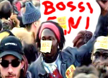 MANIFESTAZIONE contro la legge BOSSI - FINI - che vuole rimpatriare gli immigrati che non lavorano regolarmente in italia. non si comprende come una questione del genere possa essere presa in considerazione dai singoli stati, pur essendo noi in europa. insomma questa U.E sembra decidere soltanto dei fatti economici mentre di quelli inumani - dalle carceri alle condizioni degli operai - dalla censura nella comunicazione agli scioperi - lascia libera autonomia. di questo passo, l'unione, saltera' per il malcontento e manifestazioni.... in un paese.... non e' solo l'economia a gestire i cambiamenti. |